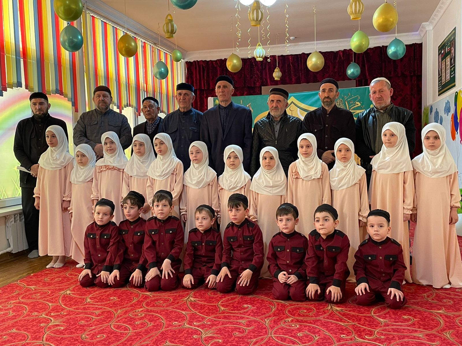 Во всех возрастных группах были проведены беседы о значимости месяца Рамадан, о правилах поведения на дорогах в праздничный день "Ураза - Байрам". Было проведено праздничное мероприятие «Марша бог1ийла хьо, беркате Рамадан бутт!» для воспитанников средних групп. В ходе праздника, воспитанники прочитали стихотворения, суры из Корана, исполнили нашиды, показали сценку «Марха досту де». Маленькие «Знатоки Ислама» показали свои знания и получили медали и сладкие призы. В конце мероприятия выступили сотрудники нашего детского сада и поздравили всех со священным месяцем Рамадан.